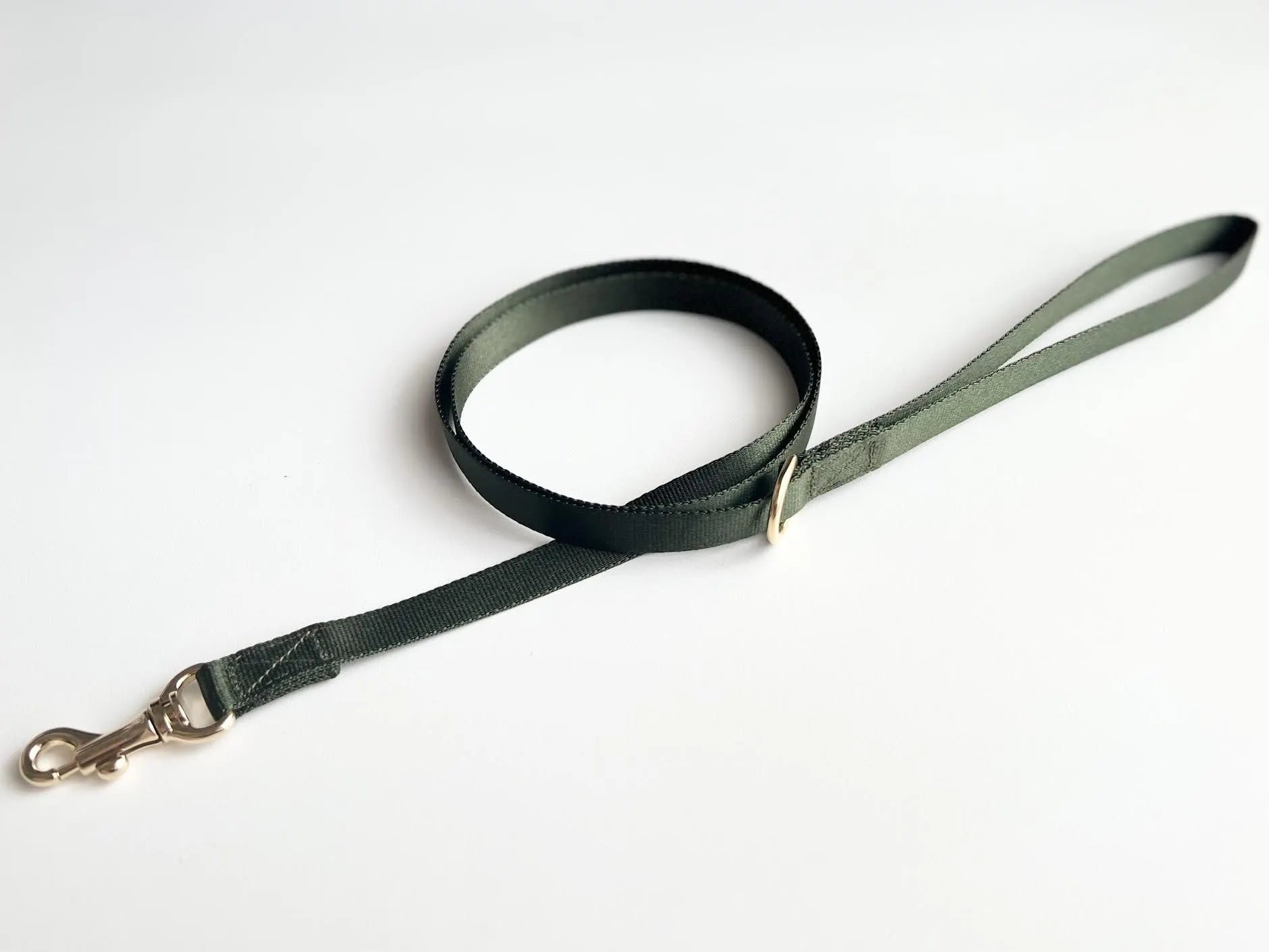 A glossy, elegant nylon lead with a gold-tone buckle.